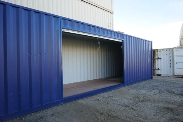 While these doors are not as secure as a steel man door or the original cargo swing doors, they are much easier to get into than the cargo swing doors and are a great solution if needing more and larger access points to your container. We can install multiple roll doors along one side of a container giving you the ability to forklift goods into the side of it, preventing things from getting trapped at the opposite end of the swing doors.