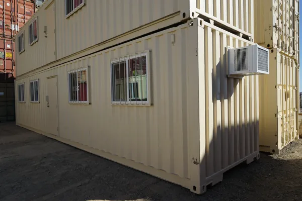 The 40′ Ground Level Office Container delivers a roomy, practical workspace ideal for on-site operations across multiple industries, from construction projects to special events and remote work locations.